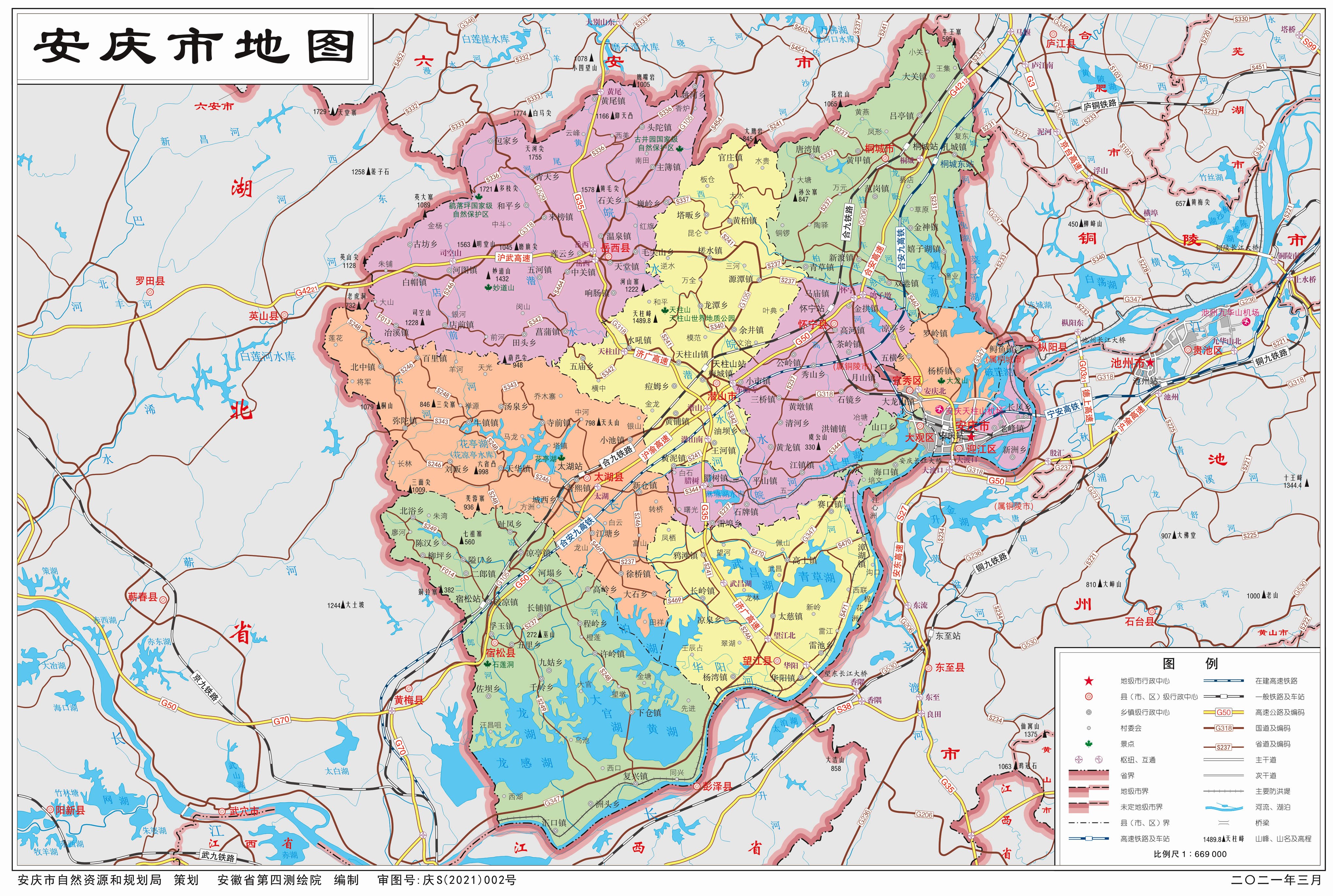 安慶市轄3個(gè)市轄區(qū)、5個(gè)縣,代管2個(gè)縣級(jí)市: