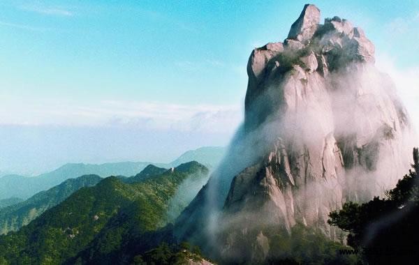 天柱山,亦稱“皖山”或“潛山”,在潛山縣城西北部,漢武帝曾封為南岳。主峰天柱峰,海拔1485米,石骨嶙峋,奇峭險峻。四周有飛來峰、天獅峰、蓮花峰、觀音峰、黑虎峰等山峰,危崖羅列,怪石嵯峨;云海瀑布,幽深瑰麗。有三祖寺、馬祖庵、司元洞、渡仙橋、煉丹臺、石牛洞等勝跡。山中有“天柱云霧”名茶及瑞香木、魚鱗木等多種珍貴植物。為世界地質(zhì)公園、國家重點風(fēng)景名勝區(qū)。境內(nèi)的天柱山又名皖山、皖公山,因其主峰“一柱擎天”而得名。公元前106年漢武帝南巡時封其為“南岳”,后為隋文帝詔廢,故被人們尊為“古南岳”。景區(qū)內(nèi)“峰雄、石奇、洞幽、水秀”,兼有豐富的人文景觀,集北山之雄,南山之秀于一身,自然風(fēng)光雄奇靈秀,人文景觀博大精深,堪稱一幅幅絕妙的山水畫卷。1982年被國務(wù)院公布為全國首批44家國家級重點風(fēng)景區(qū)勝區(qū)之一,2011年5月5日批準為安徽繼黃山、九華山之后,第三家“AAAAA”級旅游區(qū)、并獲得國家森林公園、國家地質(zhì)公園、中國自然和文化遺產(chǎn)地等稱號。