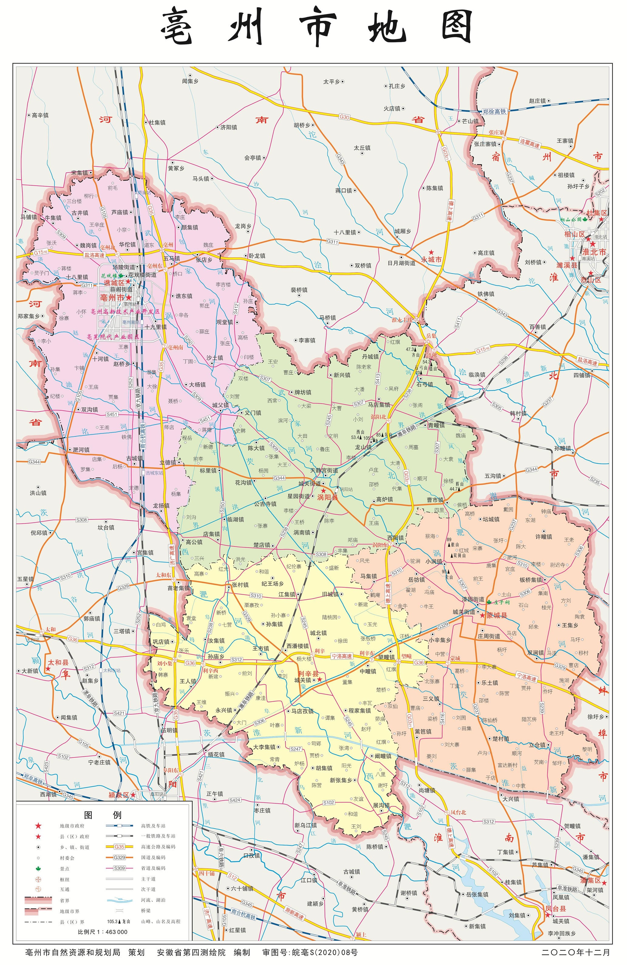 亳州市轄1市轄區(qū)、3個(gè)縣: