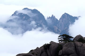 天海,黃山的中心,有黃山四絕:奇松,怪石,云海,溫泉。因?yàn)樵坪樗慕^之首,所以黃山又名為“黃海”。