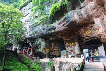 象鼻巖:巨石滑坡崩落,自然形成一石梁架巨石間,下開一洞,寬廣若室,故亦稱天門巖。洞內(nèi)碑碣林立,內(nèi)外近處,摩崖石刻,琳瑯滿目。洞北外側(cè),明嘉靖間筑雷霆糾罰司,奉火神王靈官。
