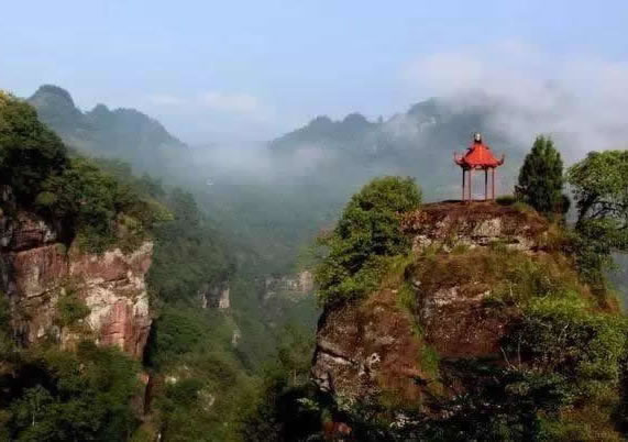 仙人花轎:紅色丹霞巖層,經(jīng)長期的雨侵風蝕,自然形成獨立而方正的山體景觀。