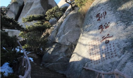 神秘谷,在天池峰南,又稱司元(玄)洞。神秘谷石由龍宮、迷宮、逍遙宮等組成,自龍吟虎嘯崖入口,穿過五指峰,緊傍飛來峰,環(huán)繞銜珠峰,直達渡仙橋,全長400多米,落差100多米。谷內(nèi)洞上有洞,洞里有洞,有的相連,有的間隔,道家視此地為洞天福地,道書稱之為第十四洞天。舊志稱此洞“空邃可容萬余武,下有水晶巖,直通滄海。后呼為總官洞。”