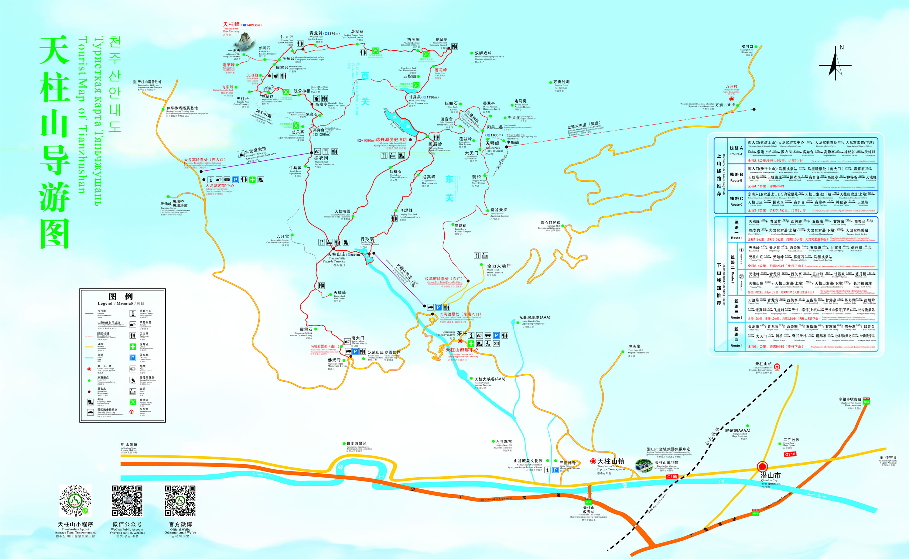 天柱山主峰(天柱峰)海拔為1489.8米,地理坐標(biāo)東經(jīng)116°27′,北緯30°43′。規(guī)劃保護區(qū)面積為333平方公里,風(fēng)景區(qū)面積為82.46平方公里。雄峰、奇石、秀水、洞幽,被譽為天柱山“四絕”。天柱山擁有全國唯一、全球揭露面積最大、暴露最深的超高壓變質(zhì)帶,形成了獨特的地質(zhì)奇觀。共分為八大景區(qū):三祖寺、九井河、虎頭崖、馬祖庵、主峰、后山、龍?zhí)逗、大龍窩。景區(qū)內(nèi)千峰競奇,萬壑藏幽,巍峨崢嶸,不可名狀。白居易贊美“天柱一峰擎日月,洞門千仞鎖云雷”。
