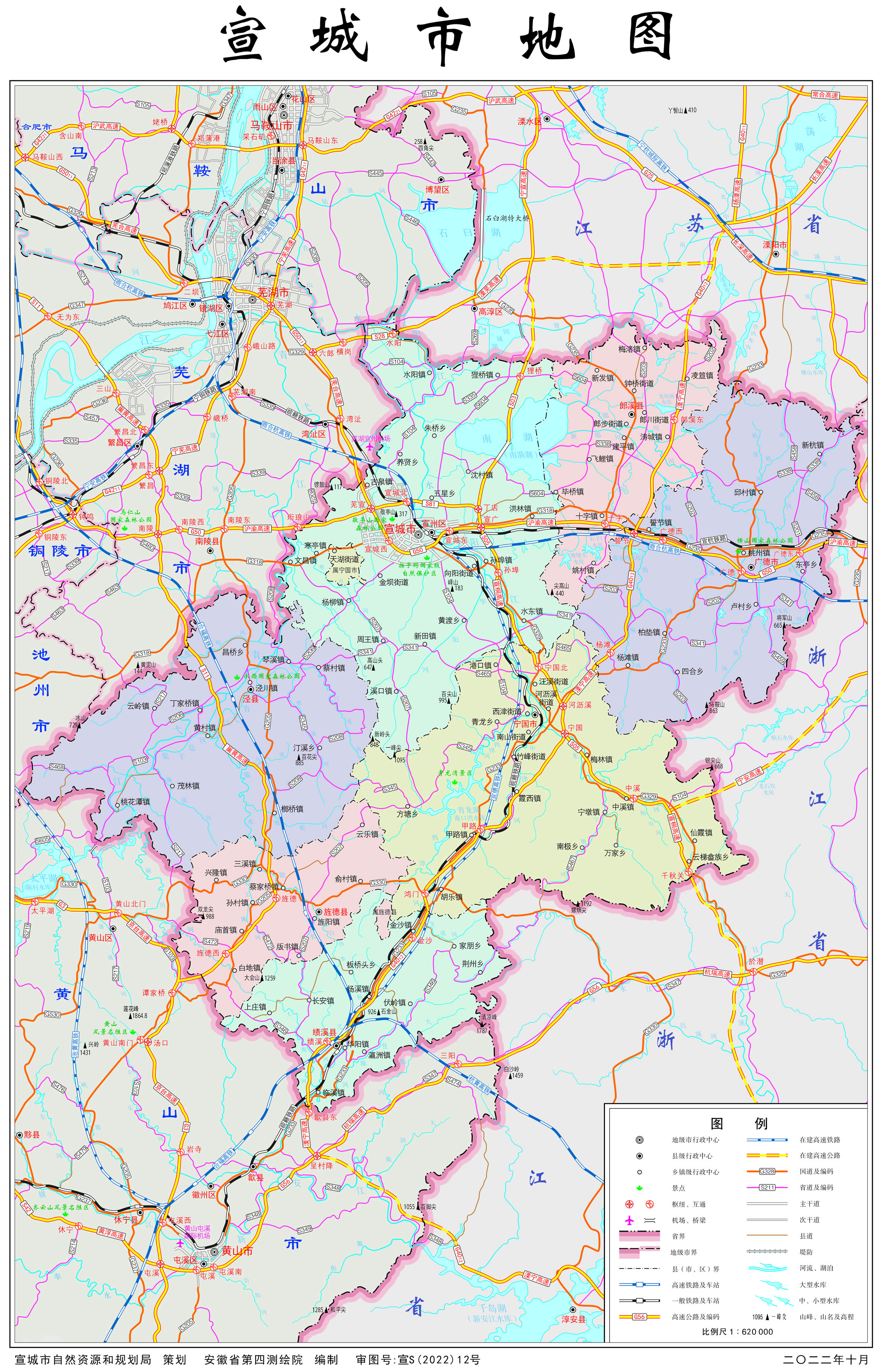 宣城市轄1個(gè)市轄區(qū)、4個(gè)縣,代管2個(gè)縣級市: