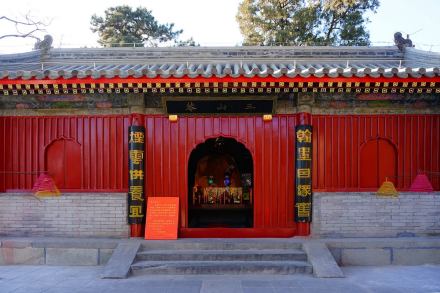 三山庵是八大處的第三處寺院,創(chuàng)建于金天德三年(1151年),山門面朝東北,是一座四合院落。山門殿為三開間,左右各開角門一扇;正殿五楹并配有耳房兩間;兩配殿門戶相對(duì)分列于正殿兩廂。山門殿懸額“三山庵”;垂聯(lián)“翰墨因緣舊;煙云供養(yǎng)宜”;正殿懸額“是大世界”,聯(lián)題:“慈目靜心法相;和風(fēng)甘雨祥云”。此院額聯(lián)皆為今人手筆。