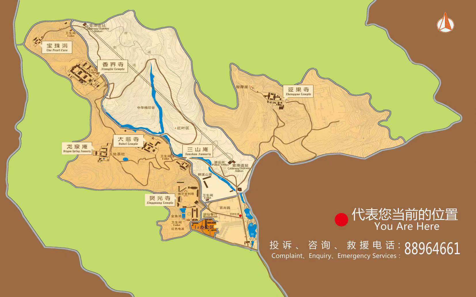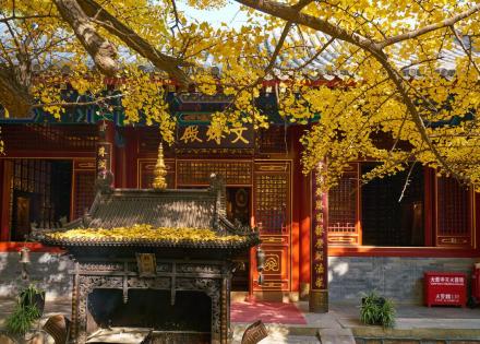 此為八大處一大勝景。霜秋一到,三山之上的黃櫨樹、火炬樹、元寶楓以及柿子樹、核桃樹和山花椒等等,黃時(shí)薄山碎,金迎風(fēng)閃爍,紅時(shí)又如二月鮮花處處流丹。有橡樹、青松翠柏,赤橙。