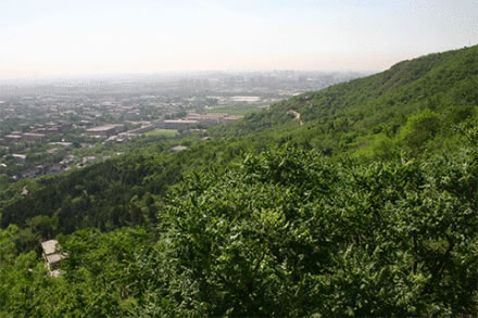 西出京城,舉目眺望,就會(huì)看見小西山南端有三座突兀的山峰。南為虎頭山,北為青龍山,中間的是翠微山,三山形如三角,呈鼎足之勢(shì)。三山又像一把圈椅,翠微山(464米)為靠背,青龍山(438米)、虎頭山(387米)為左右扶手。