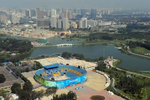 朝陽(yáng)公園沙灘排球場(chǎng)是北京奧運(yùn)會(huì)臨時(shí)場(chǎng)館之一,位于朝陽(yáng)公園北部原煤氣用具廠舊址,由中建國(guó)際設(shè)計(jì)顧問(wèn)有限責(zé)任公司設(shè)計(jì)。整個(gè)比賽用地包括一個(gè)主比賽場(chǎng)、兩塊熱身場(chǎng)和六塊訓(xùn)練場(chǎng),共設(shè)觀眾席位12000個(gè),項(xiàng)目規(guī)劃占地面積184500平方米,建設(shè)用地面積150003平方米,總建筑面積14169平方米。包括一個(gè)住比賽場(chǎng)、兩塊熱身場(chǎng)、六塊訓(xùn)練場(chǎng)和三座附屬功能用房,主賽場(chǎng)結(jié)構(gòu)為管架式鋼結(jié)構(gòu)。綠化面積達(dá)70%以上,是占地面積最大、綠化面積最廣的場(chǎng)館之一。沙灘排球場(chǎng)館跟“鳥(niǎo)巢”一樣,都屬于鋼結(jié)構(gòu)建筑,用鋼量達(dá)2400噸。由于它形似“燕窩”,于是就有北有“鳥(niǎo)巢”、東有“燕窩”的戲說(shuō)。