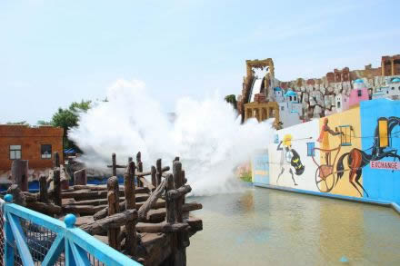 飛越牛奶河:旋轉(zhuǎn)的水上飛機(jī),旋轉(zhuǎn)速度4.32米/秒,船艙最高運(yùn)行速度6.7米/秒,共9個(gè)船艙。