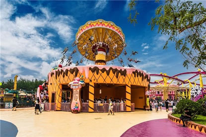 歡樂(lè)谷第四期在原螞蟻王國(guó)的區(qū)域重建,13個(gè)游樂(lè)項(xiàng)目分別用不同的甜品造型筑造包裝。