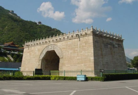 現(xiàn)存的云臺(tái),平面呈長(zhǎng)方形,底部東西長(zhǎng)近27公尺,南北深17公尺半;頂部東丙長(zhǎng)24公尺,南北深近15公尺。臺(tái)頂四周安設(shè)石護(hù)欄和排水龍頭。臺(tái)座中間開(kāi)一券門,寬6公尺余,高7公尺余,為五邊折角尤拱券,可通車馬。券門和券洞上有元代精致的石刻,是研究佛典和古文字的珍貴資料。在距北京市區(qū)50余公里外的昌平區(qū)境內(nèi)。居庸關(guān)得名,始自秦代,相傳秦始皇修筑長(zhǎng)城時(shí),將囚犯、士卒和強(qiáng)征來(lái)的民夫徙居于此,取"徙居庸徒"之意。漢代沿稱居庸關(guān),三國(guó)時(shí)代名西關(guān),北齊時(shí)改納款關(guān),唐代有居庸關(guān)、薊門關(guān)、軍都關(guān)等名稱。