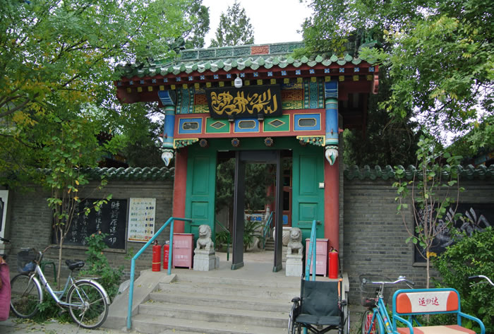 張家灣清真寺 張家灣清真寺,位于張家灣鎮(zhèn)西街。中軸線上主體建筑禮拜殿,勾連搭四卷,硬山簡瓦,規(guī)模較大。一三兩卷為箍頭脊,二卷為調(diào)大脊,大吻壯觀,小獸玲瓏。第四卷明間為窯殿,四角攢尖,綠琉璃寶頂高聳天空,次間則為卷棚頂,別具一格。博古彩畫精美,西頭磚雕別致,嵌山方圓木窗活潑,井口天花鮮艷整潔,南北配殿與禮拜殿之間有海棠柱曲廊相連。結(jié)構(gòu)嚴(yán)謹,錯落有致。 |