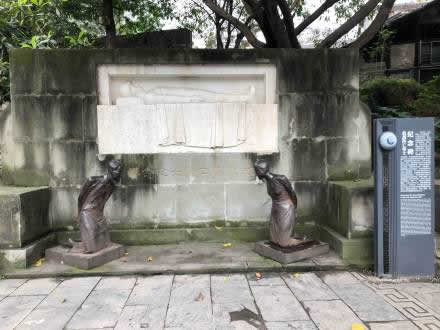 為紀(jì)念抗戰(zhàn)陣亡的將士而塑的大賣國(guó)賊汪精衛(wèi)、陳璧君夫婦的跪像。民國(guó)二十九年(1940年),跪像由馮玉祥主持、王臨乙設(shè)計(jì)創(chuàng)作,因經(jīng)費(fèi)原因,原跪像為青石雕刻,20世紀(jì)50年代修公路被深埋地下,F(xiàn)跪像為生鐵鑄造,系2002年重新制作。