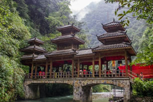 渝黔分界橋又名風雨橋,位于黑山谷民俗文化展示區(qū)旁,是渝黔分界橋。一腳踏兩省,兩眼望渝黔。