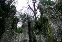 生態(tài)石林位于藥池壩南約1000米處,有一片郁郁蔥蔥森林掩蓋下的石林。巖石出露地表幾米或十幾米,石上苔蘚厚重,立石頂部、間隙雜樹叢生,黃楊、杜鵑、紅豆杉等繁茂生長,10公頃范圍內若天然盆景園。