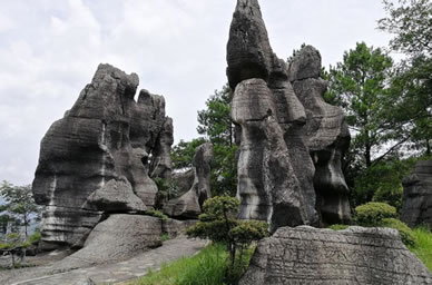 以地表石林為代表的典型的喀斯特地貌景觀十分吸引人。該類景觀表面呈虎皮狀,形成一系列各不相同的觀賞景點。在這里,群峰壁立,奇峰危石,可謂千姿百態(tài),石門、石寨、石柱等,酷似人工堆疊,卻無人工痕 跡;飛禽走獸的石頭,栩栩如生、惟妙惟肖;田園阡陌、炊煙裊裊,清泉碧池、懸崖雪瀑,白鶴青 、 碧空鳥語,清麗若未施粉黛的閨秀楚楚動人。其主要景觀有情朗峰、香爐山、巨扇、地縫一線天、化石 、石鼓、將軍石等數(shù)十處。顯示出萬盛石林景觀的美感與靈性。