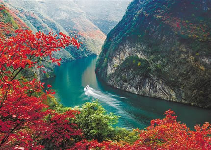巫山的氣溫給紅葉創(chuàng)造最佳生長(zhǎng)和形成時(shí)機(jī)。三峽庫區(qū)蓄水達(dá)到170.9米,江、山、紅葉三位一體,高峽平湖與漫山紅葉交相輝映。巫山紅葉集中連片有6700公頃,其中以小三峽的巴霧峽最為集中。秋季漫山紅葉,層林盡染,游客既可乘車上山,隨公路盤旋觀賞紅葉景觀,亦可坐船仰望兩岸紅葉,還可以徒步林中小道近距離觀賞紅葉。
