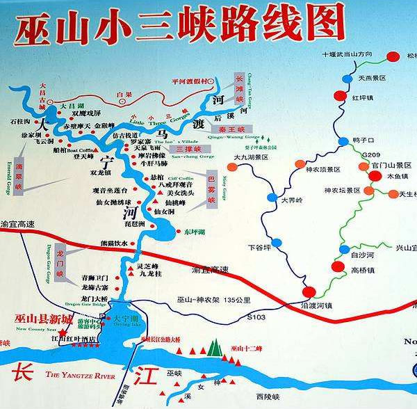 巫山小三峽·小小三峽景區(qū)全長(zhǎng)65千米。有水峽景觀、峰巖景觀、洞穴景觀、動(dòng)植物景觀、人文景觀、空間景觀。其中水體景觀包括水、泉、溪、潭、灘、簾瀑、卵石等多種類型,峰巖景觀包括峭壁、山峰、奇石、圖案、肌理、色彩等多種類型,洞穴景觀包括發(fā)育程度各異、大小各異、高度各異、風(fēng)格各異的眾多喀斯特溶洞、地下河。