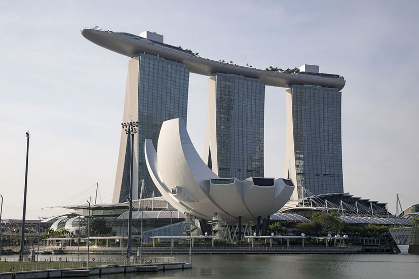 新加坡金沙娛樂城 新加坡金沙娛樂城位于濱海灣的新加坡金沙娛樂城設(shè)有賭場、歌劇院、藝術(shù)科學(xué)博物館、會議中心與展覽設(shè)施、零售商和多樣化的餐館等,共6大建筑系列。在高達55層樓的酒店內(nèi),擁有2561個房間。為酒店冠上榮耀之光的,是位于第57樓的金沙空中花園,這座占地一公頃的空中綠洲將匯集蔥蘢的綠蔭、雅致的花園,甚至一座無邊泳池。