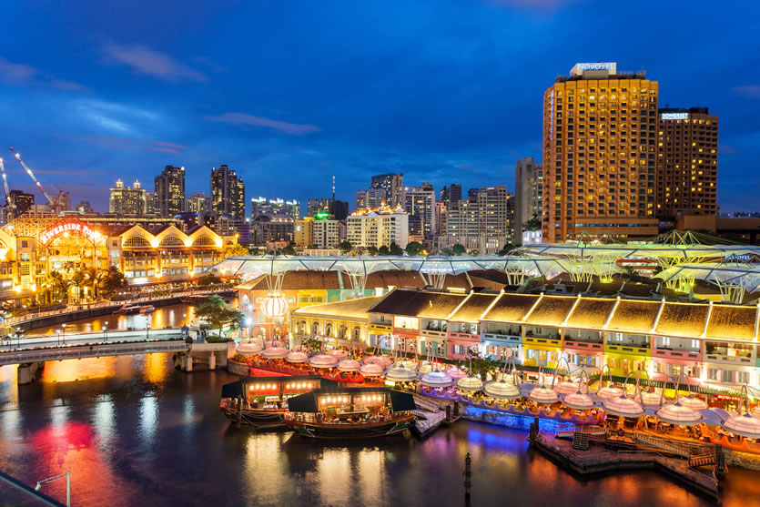 克拉碼頭 克拉碼頭位處新加坡河河畔,克拉碼頭昔日是個繁忙的貨物起卸岸及貿(mào)易中心,在改造計劃下,悉數(shù)變作餐館及酒吧。原來的60家倉庫和商店經(jīng)發(fā)展已成為200家商店、餐廳、酒吧和娛樂場所。駁船碼頭在克拉碼頭的下游,舊時的倉庫已經(jīng)改頭換面,這里至少有35家風(fēng)格各異的酒吧和餐廳,也是市區(qū)沿河最具吸引力的娛樂場所之一。