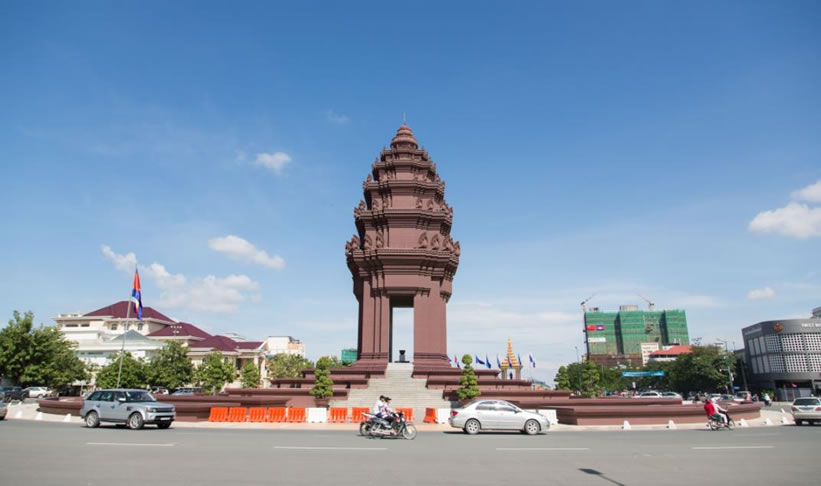 獨立紀(jì)念碑 柬埔寨獨立紀(jì)念碑位于諾羅敦大道和西哈努克大道交叉處,為紀(jì)念1953年11月9日柬擺脫法國殖民統(tǒng)治,獲得完全獨立而建。1958年3月落成,高37米,共7層,上有蛇神(柬文化象征)100條。每年獨立節(jié)時,柬國王或國王代表都要在此舉行隆重的慶典。來訪的外國元首也多到這里獻花圈。