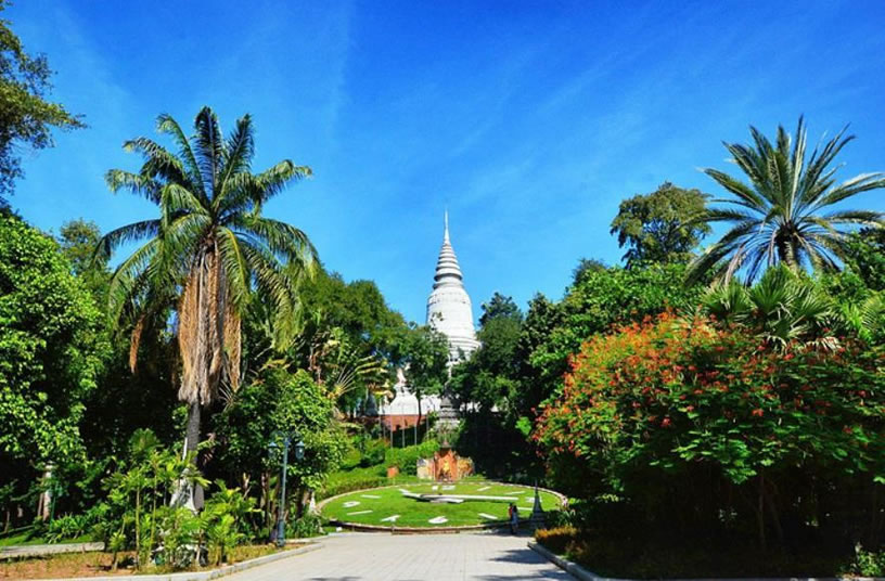 金邊王宮 金邊王宮(RoyalPalace)也稱四臂灣大王宮,因位于上湄公河、洞里薩河、下湄公河與巴薩河的交匯處而得名,是諾羅敦國王于1866—1870年建造的。王宮為長方形,長435米,寬402米,外有城墻。王宮的建筑具有高棉傳統(tǒng)建筑風(fēng)格和宗教色彩,宮殿均有尖塔,代表繁榮;殿身涂以黃、白兩色,黃色代表佛教,白色代表婆羅門教。王宮最初為木結(jié)構(gòu),后改建為水泥結(jié)構(gòu),但保持了原來的風(fēng)貌。王宮內(nèi)主要建筑有:銀閣、金鑾殿、波佳尼閣、凱瑪靈宮、月光樓。