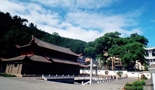 南溪書院:在尤溪縣城南的公山之麓,原為邑人鄭義齋館舍。北宋宣和五年(1123年),朱熹之父朱松任尤溪縣尉,去官后寓居于此。南宋建炎四年(1130年),朱熹在此誕生。朱熹逝世后,縣令李修于嘉熙元年(1237年)捐資在此修建文公祠、韋齋祠、半畝方塘和尊道堂等建筑,祀朱家父子。寶元年(1253年),宋理宗賜額“南溪書院”。元至正元年(1341年),分建二祠,明清后屢有修繕擴建。書院古樸莊嚴,現(xiàn)建筑面積1000平方米,有韋齋祠、觀書第、毓秀坊、毓秀亭等建筑。正堂當中立朱熹石膏塑像,兩旁是朱子手書板聯(lián)四幅:“讀書起家之本 和順齊家之本 勤儉治家之本 循理保家之本”。四壁高懸其上溯八代列祖列宗畫像。書院內的方塘,為朱熹幼年讀書處。朱熹《觀書有感》詩曰:“半畝方塘一鑒開,天光云影共徘徊;問渠那得清如許,為有源頭活水來”。其中的“半畝方塘”即指此處。明弘治十一年(1498年),知縣方溥主持,把半畝方塘擴大浚深,并建亭于塘上,通以石橋,取名“活水亭”,今皆修復。