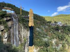 形為神龍劍,內(nèi)置3臺高速電梯,高達168米的玻璃觀景電梯,是俠文化與自然景觀的結(jié)合。27秒即可升至頂峰,速度達每秒4米,每次每臺30/人,每小時運力1800人。搭乘懸崖寶劍電梯登頂,便利快捷,不用拾級而上便可領(lǐng)略峽谷風光。