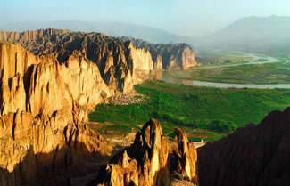 黃河石林生成于今400多萬(wàn)年的的第三紀(jì)末期和第四紀(jì)初期的地質(zhì)時(shí)代,由于地殼運(yùn)動(dòng),形成以黃色的河湖相砂礫巖為主、造型千姿百態(tài)的石林地貌奇現(xiàn)。石林景區(qū)陡崖凌空,景象萬(wàn)千,峰回路轉(zhuǎn),步移景變,其造型天造地設(shè)、鬼斧神工,猶如雕塑大師之夢(mèng)幻杰作!坝^音打坐”、“屈原問(wèn)天”、“木蘭遠(yuǎn)征”、“月下情侶”、“十里屏風(fēng)”“天橋古道”、“一線天”等高達(dá)幾十米甚至上百米的形態(tài)各異、千奇百怪的石柱石筍石林景觀隨處可見(jiàn)。中華民族的母親河——黃河,在這里形成S型的回水灣由南向北進(jìn)入寧夏地界,河的東岸除高聳的石林外,還有背山面河,林木蔥郁的“龍灣綠洲”。專家評(píng)價(jià):甘肅黃河石林集中國(guó)地質(zhì)地貌之大成,組合優(yōu)異,動(dòng)靜結(jié)合,國(guó)內(nèi)罕見(jiàn),西北獨(dú)有,堪稱中華自然奇觀的一處極具開(kāi)發(fā)價(jià)值、高品位的自然生態(tài)旅游景區(qū)資源。 這里適合休閑度假、獵奇探險(xiǎn)、地質(zhì)考察、漂流攀巖等旅游娛樂(lè)項(xiàng)目,還可作為西部影視片、科學(xué)幻想片的最佳外景基地。甘肅黃河石林是中國(guó)西部旅游觀光的一處勝地,是黃土高原孕育而成的美麗奇葩。