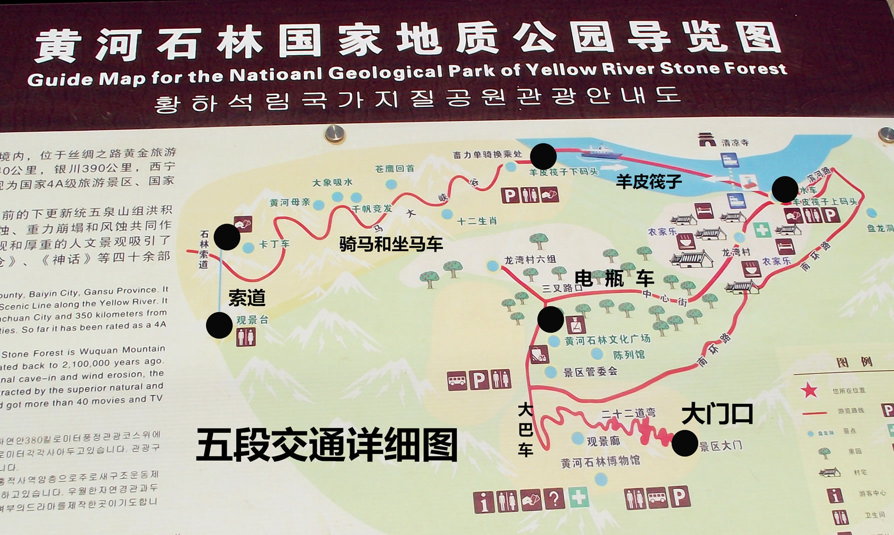 第一次看到黃河石林,便被它那氣象萬(wàn)千、雄渾壯觀的景象所震撼。黃河石林與國(guó)內(nèi)其它知名景區(qū)相比,以古、奇、雄、險(xiǎn)、野、幽見(jiàn)長(zhǎng),充分體現(xiàn)了粗獷、雄渾、樸拙、厚重的西部特色,使游客在回歸自然、領(lǐng)略奇異風(fēng)光的同時(shí),陶冶性情,修養(yǎng)身心。徜徉于黃河石林景區(qū),但見(jiàn)長(zhǎng)河抱日,峨峰接云,石林聳奇,危崖橫斷,河映崇山,曲流回旋,平疇十里,小村安臥,老屋舊椽,新灘故道,濃蔭鋪地,綠蔽河灣,繁棗滿枝,瓜果溢香,水車唱晚,浪遏皮筏,真乃世外桃源。若沒(méi)天橋古道拾級(jí)登上南山之巔,則峰林、曲流、綠洲、戈壁盡收眼底,讓人心曠神怡。而滄桑之變中不曾嬗變的原始力量,峽谷間透出的窮靈,陽(yáng)光里蕩溢的繁麗,又教人于感悟時(shí)慧眼頓開(kāi)。至于觀音崖的兇險(xiǎn),老龍溝的深邃,盤龍洞的神奇,清涼寺的幽寂,還有環(huán)村十溝的撲朔迷離和峽谷內(nèi)景象萬(wàn)千、古韻猶存的石林峰柱的磅礴氣勢(shì),以及整個(gè)34平方公里景區(qū)內(nèi),山的夢(mèng)幻、河的靈秀,綠洲的靜謚,戈壁的逍遙,不僅令人在沉思遐想中忘卻煩憂,超脫塵俗,更能引人向上,催人奮進(jìn)。