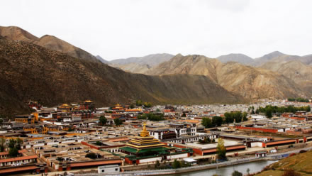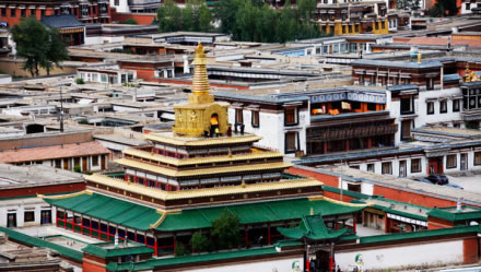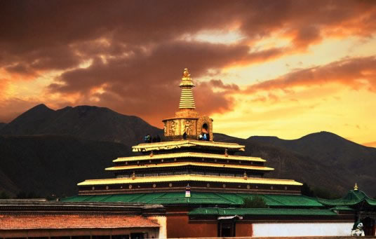 拉卜楞寺,位于甘南藏族自治州夏河縣城西0.5公里處。本名噶丹夏珠卜達(dá)吉益蘇奇貝瑯,簡稱扎西奇寺,是我國藏傳佛教(即喇嘛教)格魯派(黃教)六大寺院之一,一般稱拉卜楞寺。第一世嘉木樣阿旺宋哲大師創(chuàng)建于清康熙四十八年(1709)?滴跷迨辏1714)建立“拉章”(即嘉木樣佛宮),“拉章”音變?yōu)椤袄防恪,意為寺院最高活佛府邸?/p>