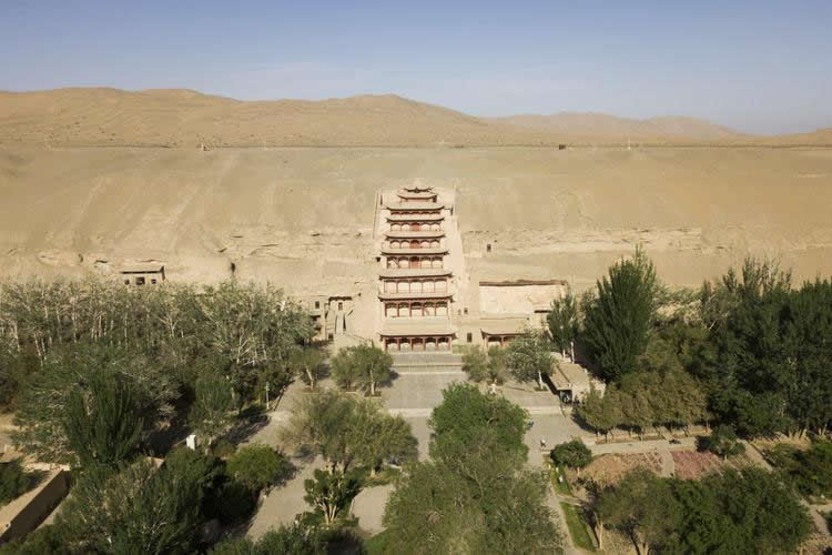 公元前111年,漢武帝為抵御匈奴,設(shè)敦煌郡作為邊防哨所。自漢武帝開(kāi)通絲綢之路后,作為西陲重鎮(zhèn)的敦煌,成為溝通中原和西域的交通樞紐、絲綢之路沿線的商業(yè)中心,以及各種民族與文化交匯的場(chǎng)域。其中,佛教文化和藝術(shù)在內(nèi)的中西文明在這里交匯、碰撞,這是敦煌石窟藝術(shù)產(chǎn)生的歷史根源。