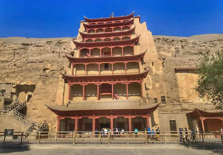 第96窟窟外木構(gòu)建筑之俗稱(chēng)。唐代稱(chēng)北大像。俗稱(chēng)大佛殿。代表窟之一。敦煌石窟之第一大窟,建于初唐。洞窟直通崖頂,高40米,窟外有九層木構(gòu)建筑,高45米。窟內(nèi)徒壁無(wú)畫(huà),依崖塑敦煌石窟中最大塑像(高33米)的彌勒佛像。高度僅次于四川樂(lè)山石刻大佛(71米)和四川榮縣石刻大佛(36米余)。在泥塑造像中,其高度則為全國(guó)之冠。