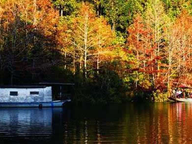 園內(nèi)還保護有半楓荷、蟒蛇、猴、黿等珍稀動植物,有碼頭、登山道、百年龜池、猴山、恐龍壁畫、瀑布觀賞點、紅葉觀賞臺等多處景點。