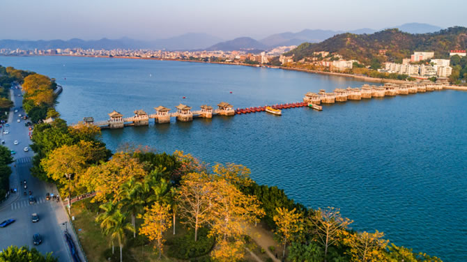 潮州自然風(fēng)光秀美。古城區(qū)筆架山、金山、葫蘆山三山拱護(hù),韓江繞古城而過,山光水色十分宜人。
