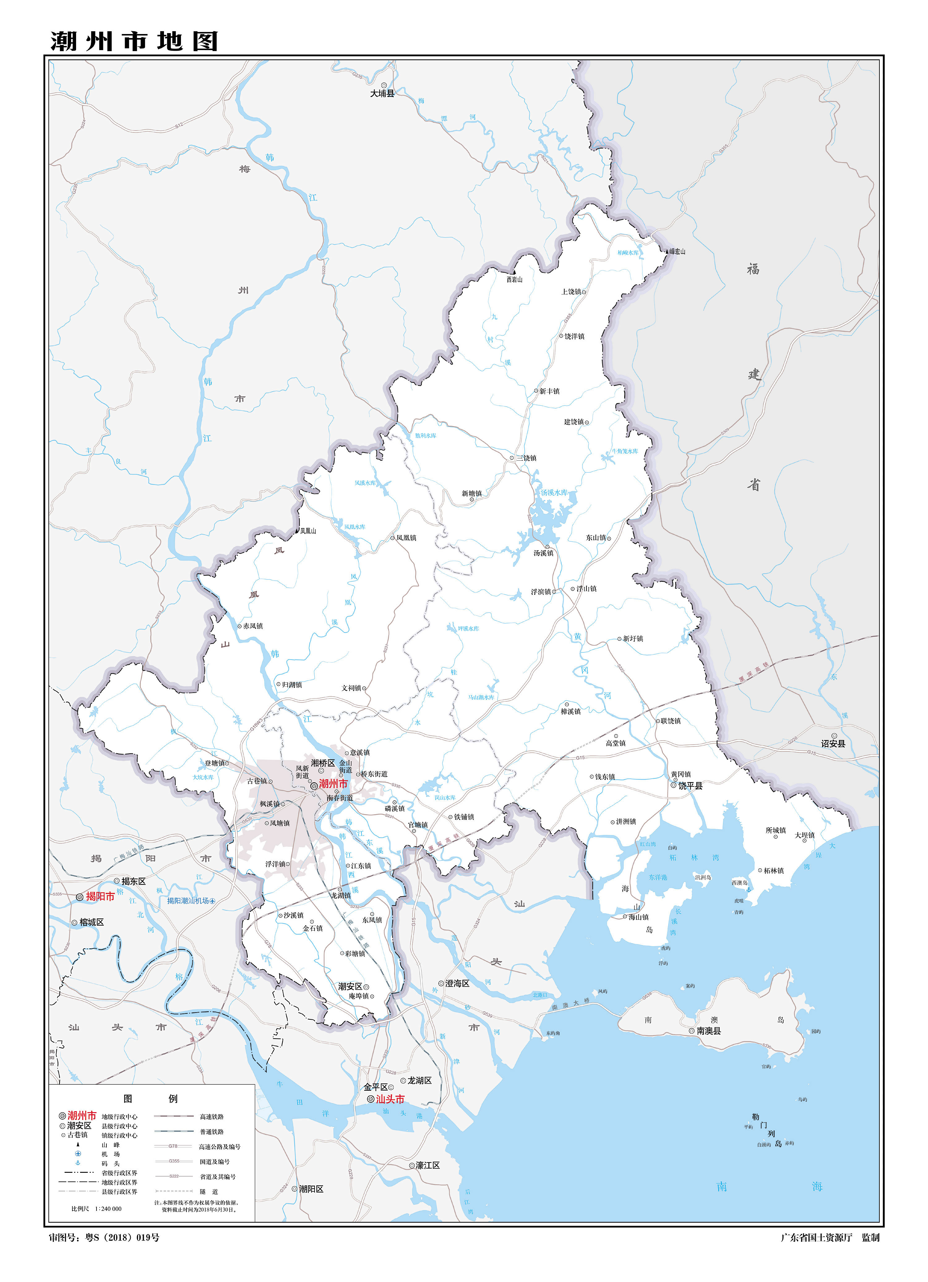 潮州市轄2個(gè)市轄區(qū)、1個(gè)縣及1個(gè)縣級(jí)管理區(qū):