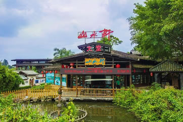 山水田園占地約0.26平方公里,以綠色環(huán)保為主題,以嶺南客家風(fēng)情為基調(diào),以休閑度假、運(yùn)動娛樂為輔。2010年5月成功舉辦第六屆文博會山水田園分會場,同時被認(rèn)定為深圳市文化+旅游示范園區(qū)(基地)。目前已建成集生態(tài)文化、客家文化及鄉(xiāng)村民俗文化為主背景的旅游觀光度假酒店,文化娛樂、休閑養(yǎng)生、會議、演藝等為一體的旅游文化產(chǎn)業(yè)園,也是中國首家以旅游度假國畫創(chuàng)作為主題的“中國(觀瀾)山水國畫產(chǎn)業(yè)基地”。 山水畫坊,國畫展館或依山傍水,曲徑通幽處,豁然見畫館;“畫在景中展,人在畫中游”,達(dá)到人、景、畫三者融合一體,形成一幅和諧動感的立體山水畫。踏進(jìn)山水田園,展現(xiàn)在眼前的是一片秀美的世外桃源風(fēng)光。清波蕩漾的湖泊鑲嵌在綠野之中,宛如少女的明眸脈脈含情。湖岸邊垂柳依依,輕拂水面。水轉(zhuǎn)筒車,吱吱呀呀吟唱著鄉(xiāng)村古老的歌謠。放眼望去,青山疊翠,小橋流水,樓臺亭榭錯落,宛若陶淵明筆下“芳草鮮美,落櫻繽紛”,有“良田美池桑竹之屬”的桃源畫境。