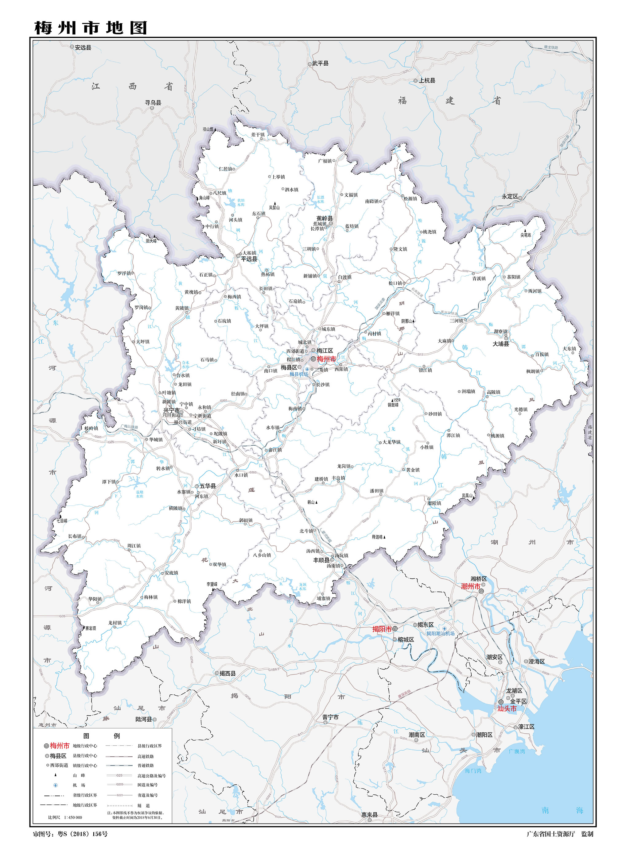 梅州市轄2個(gè)市轄區(qū)、5個(gè)縣,代管1個(gè)縣級市: