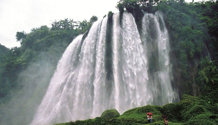 三疊嶺瀑布,位于靖西市湖潤(rùn)鎮(zhèn)新靈村,西北距市區(qū)30千米,因地處三疊嶺而得名。瀑布落差100米,寬30多米。