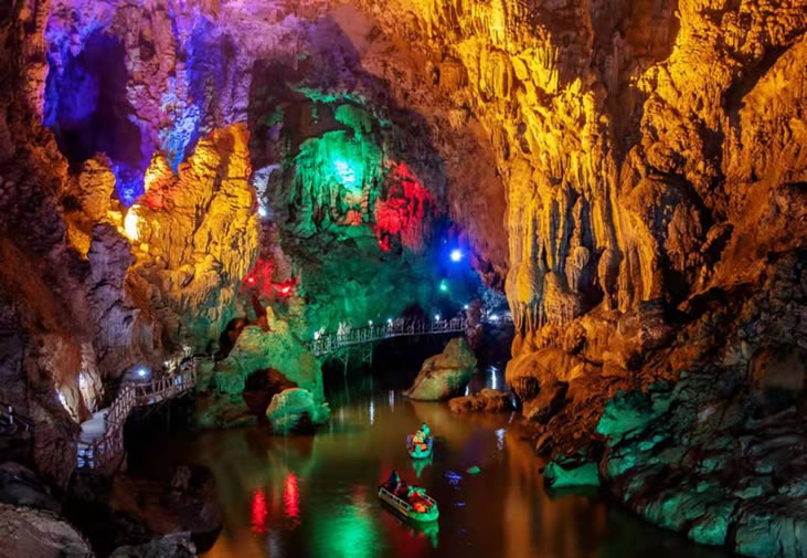 廣西平果通天河景區(qū)又稱(chēng)“敢沫巖”、“紅軍巖”,是一個(gè)溶洞暗河型景區(qū),位于廣西百色市平果縣黎明鄉(xiāng)208省道旁。溶洞最大特點(diǎn)是面積大,總面積超過(guò)10萬(wàn)平方米,其中“天上人間”面積3.3萬(wàn)平方米;空氣好,6處洞口空氣通暢;空間高,最高的“九九洞天”99米;景點(diǎn)多,石筍、石柱、石幔、石瀑、石盾、石梯田、石鐘乳千姿百態(tài),鬼斧神工,20米以上石柱26余根;景觀奇,“神奇龍脊”長(zhǎng)達(dá)60多米,鎮(zhèn)洞之寶“金銀雙塔”各高達(dá)30多米。通天河景區(qū)于2013年被評(píng)為國(guó)家AAAA景區(qū)。景區(qū)位于廣西西南部中心地帶,東距大化紅水河28公里,可連接大化七百弄等景點(diǎn);北距巴馬縣63公里,208省道直達(dá),適合與巴馬連線旅游,可連接“東巴鳳”各景點(diǎn);西可連接百色、德天瀑布、通靈大峽谷等景點(diǎn);南距南寧190公里,可連接南寧、北海等景點(diǎn)。