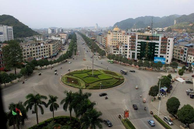 位置境域 平果市位于廣西壯族自治區(qū)中西部偏南,百色地區(qū)的東部,是南寧到百色公路的中心點(diǎn),至自治區(qū)首府南寧市距離136千米,距百色市129千米。東與南寧市馬山縣,東北和河池市大化瑤族自治縣,東南跟南寧市武鳴區(qū)相鄰;西與百色市田東縣、崇左市天等縣交界,南與南寧市隆安縣毗鄰;北與河池市巴馬瑤族自治縣、都安瑤族自治縣接壤;境內(nèi)東西最大橫距61千米,南北最大縱距78千米;全市總面積2485平方千米。