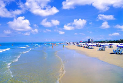 北海銀灘面積超過(guò)大連、煙臺(tái)、青島、廈門(mén)和北戴河海濱浴場(chǎng)沙灘的總和,而平均坡度僅為0.05。沙灘均由高品位的石英砂堆積而成,在陽(yáng)光的照射下,潔白、細(xì)膩的沙灘會(huì)泛出銀光,故稱(chēng)銀灘,北海銀灘以其“灘長(zhǎng)平、沙細(xì)白、水溫凈、浪柔軟、無(wú)鯊魚(yú)”等特點(diǎn),而被稱(chēng)為“天下第一灘”。