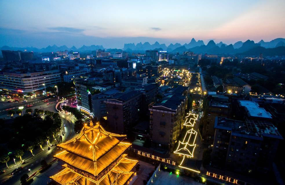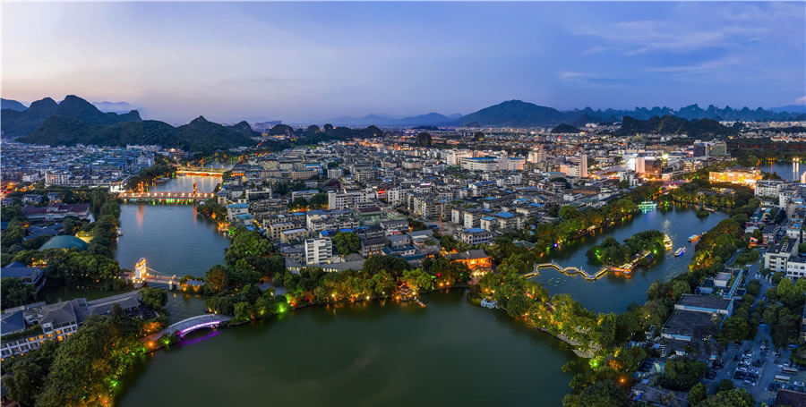 桂林兩江四湖景區(qū)是桂林城市名片,景區(qū)位于桂林市中心區(qū)域,是桂林城市中心經(jīng)典環(huán)游線路。“兩江四湖”景區(qū)是指桂林市中心區(qū)的漓江市區(qū)段、桃花江市區(qū)段、榕湖、杉湖、桂湖、木龍湖等水域所組成,并且將其相互連接而構(gòu)成環(huán)城水系的總稱。
