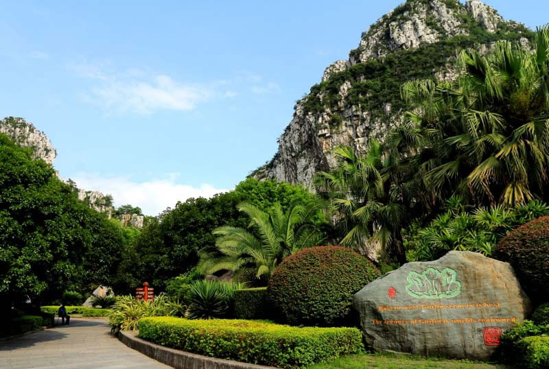 桂林園林植物園位于桂林市中心西南隅,環(huán)城西一路117號。園林植物園占地47.9公頃。園內(nèi)南溪河自西向東貫通全園,公園入口處的黑山因石灰?guī)r山石經(jīng)風(fēng)化之后呈墨黑色而得名。整個(gè)植物園以園林植物為造園骨架,掘土為池,構(gòu)木為亭,園區(qū)內(nèi)分別建有茶花園、春華秋實(shí)園、棕櫚園、榕樹園、木蘭園、銀杏楓香園、大草坪、桂花博覽園(蘇苑、杭州苑、上海苑、包公亭、天香臺(tái)閣苑)、水杉林、梅花園和珍稀植物園等精品園區(qū),還有巧借山形地貌構(gòu)筑的盆景園、下沉式廣場、櫻花園(日本園)、歐洲園(法國園)、相思泉等景觀式亭臺(tái)樓閣。園內(nèi)植物種類達(dá)1000多種,品種達(dá)2200多種。特別是桂花博覽園收集了桂林所有的優(yōu)良桂花品種,并引種了四川、浙江等地10多個(gè)優(yōu)良品種,共有桂花品種80多個(gè),是國內(nèi)外同類園區(qū)桂花品種最多,也是銀桂品種最多的桂花園,是全國3個(gè)“中國桂花品種繁育中心”之一,第二屆中國桂花博覽會(huì)的主會(huì)場,為中國取得桂花國際登錄權(quán)作出了特殊貢獻(xiàn)。珍稀植物區(qū)森林茂密,曲徑通幽,有國家一級保護(hù)植物杪欏、金花茶等珍稀植物,也有國家二級保護(hù)植物金錢松、柔毛油杉、黃枝油杉、福建柏、興安楠、蝴蝶果、鵝掌楸、馬尾松、花櫚木等喬木。