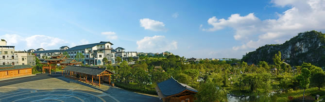 桂林侗情水莊位于二塘鄉(xiāng)北芬村118號,以侗族民居、民俗、手工藝術(shù)制作等民族文化移植到北芬村發(fā)展旅游業(yè)。占地約6.5公頃,建筑面積為1.5萬平方米,建筑極富桂北民居特色,本著“建舊如舊”的設(shè)計(jì)理念,既體現(xiàn)了侗族木結(jié)構(gòu)樓房特點(diǎn)又糅合了大村古民居青磚黛瓦建筑元素,主體建筑所用古青磚90%從附近縣鄉(xiāng)收購。侗情水莊于2015年開建,至2017年12月,共投資2.5億元,建成風(fēng)雨橋、民族風(fēng)情古民居樓、侗家對歌臺(tái)、侗家農(nóng)具屋、侗家鐘乳石廳、侗鄉(xiāng)水上舞臺(tái)、侗銀工坊、傳統(tǒng)美食服務(wù)區(qū)、祠堂及綜合服務(wù)樓、迎賓廣場、侗家大道等建筑;拘纬梢粋(gè)集侗民族表演、古民居和民族工藝欣賞、休閑娛樂、吃住購為一體的多民族文化旅游示范區(qū)。2017年4月試營業(yè)。2018年,獲評國家3A級旅游景區(qū)。