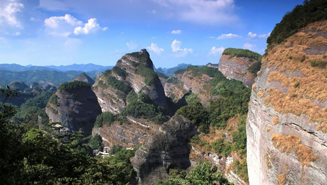 八角寨地處湘桂交界的、五嶺山脈里最長(zhǎng)者越城嶺山脈(長(zhǎng)達(dá)二百多公里)西北側(cè)的余脈(廣義崀山即以崀山為代表的跨越新寧縣和資源縣的整條山或大崀山),屬典型的丹霞地貌,有關(guān)專家譽(yù)為“丹霞之魂、國(guó)家瑰寶 ”,“中國(guó)最美的七大丹霞”之一。