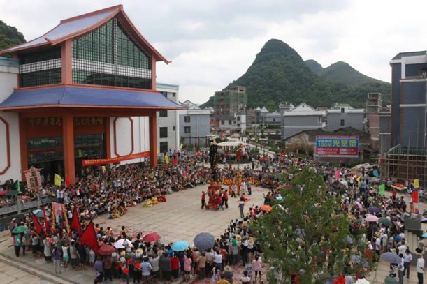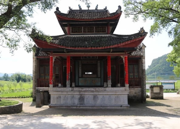 位于鐘山縣城西面公安鎮(zhèn)大田村,距縣城約十公里,此戲臺(tái)建于清光緒四年(即1878年),為磚、石、木結(jié)構(gòu),呈凸字形,通高10余米,由前臺(tái)和后臺(tái) 組成,前臺(tái)面寬6.37米,深5.5米;后臺(tái)寬10.12米,深3.6米;基高1.8米。整座戲臺(tái)青石青磚,雕工極為精美圓潤(rùn),八柱梁構(gòu)架,八角藻井復(fù) 頂,鼓石墊柱,青磚砌墻,青石為基,基旁雕以八仙賀壽,鑿雙龍以戲珠,臺(tái)上鏤兩虎以扶角,嵌二獅以呈瑞,后屏風(fēng)飾以山川樓閣,彩鳳仙鶴等木雕,工藝精湛, 構(gòu)圖和諧。戲臺(tái)除古樸典雅、雄偉壯觀,且符合力學(xué)、聲學(xué)原理,整座戲臺(tái)屬水口廟附屬建筑,隱映于古樹秀竹之中,清澈的溪流環(huán)繞其中,整個(gè)環(huán)境優(yōu)雅別致,清 靜恬適,為廣西不可多見的古戲臺(tái)之古代建筑之一。1981年列為廣西壯族自治區(qū)重點(diǎn)文物保護(hù)單位。該戲臺(tái)所處村莊大田村也是一個(gè)很有特點(diǎn)的村莊,老屋、古 榕、古樟在池塘的映襯下顯得特有韻味。
