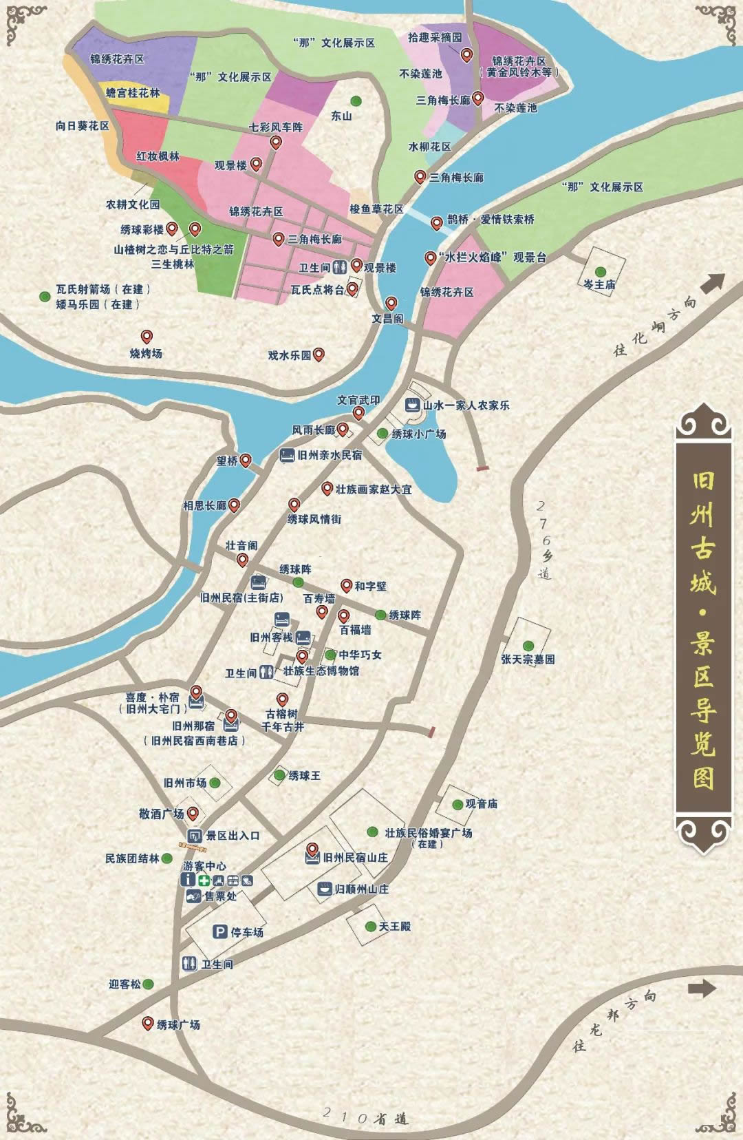 舊州景區(qū)位于廣西壯族自治區(qū)靖西市市區(qū)以南8公里,四面被喀斯特地貌群山層層環(huán)抱,古城在兩條河流的匯集處依水而建,年平均氣溫19.9℃,四季宜人!吧剿惞鹆郑瑲夂蛩评ッ鳌,人文古跡眾多,壯族風(fēng)情濃郁,素有“壯族活的博物館”之美譽。2018年成功評定為國家AAAA級景區(qū)。