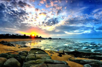 傍晚在松軟潔凈的沙灘上拾貝捉蝦,收獲一份意外的驚喜,享受自己辛勤勞動的成果,不必?fù)?dān)心夕陽西下,在暮色蒼茫的漁村下榻,潔凈簡樸的漁家旅店是濱海月色星光下最溫馨的家。